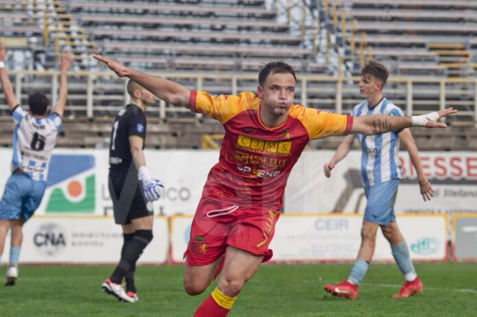 Formazione quasi obbligata per Gadda che premia lo scalpitante Sabbatani al rientro dopo un mese ad accompagnare Tirelli in attacco. E’ proprio il 9 giallorosso a provarci subito di testa su corner di Nappello ma senza trovare lo specchio. La risposta del Victor è immediata con Sollaku e D’Este che però non spaventano Cordaro. Squadre molto attente nella prima frazione e Ravenna che cerca con il giro palla di trovare spazi in un centrocampo ospite attentissimo a chiudere ogni linea di passaggio. Le iniziative giallorosse passano dai piedi di Nappello che muovendosi fra le righe cerca di fare saltare la maglia organizzata da Cassani. Lo stesso Nappello prova ad impensierire Pazzini con una punizione dai 25 metri deviata in angolo, proprio sul corner palla che viaggia pericolosamente in area piccola ma Tirelli non riesce a deviare in rete. Poco oltre la mezz’ora grande ripartenza giallorossa con Tirelli che manovra molto bene per Sabbatani il quale trova la corsa di Mancini, ma il cross dell’esterno viene deviato all’ultimo da De Queiroz. Ultima emozione della prima frazione l’invenzione di Nappello per Sabbatani che controlla in area ma conclude alto. La ripresa si apre con un sussulto, al 54’ Lombardi alleggerisce male e stende Sabbatani che si stava avventando sul pallone dal limite dell’area, nessun dubbio per il direttore di gara che estrae un cartellino rosso per il difensore bianco azzurro. La superiorità numerica ed il pubblico del Benelli (oltre 2000 presenti, record stagionale) spingono i giallorossi che vogliono conquistare i tre punti. Subito avanti il Ravenna, palla recuperata da Rrapaj per Nappello che si invola verso l’area e conclude di poco a lato. Poco dopo di nuovo Nappello trova Sabbatani in area che viene atterrato ma l’arbitro fa cenno di proseguire. Al 68’ il Ravenna passa in vantaggio meritatamente, palla in verticale di Alluci per la sponda di Sabbatani, arriva Nappello alla conclusione respinta da Pazzini, ma il pallone arriva nei piedi di Tirelli che deposita in rete, è il 10 gol in campionato dell’attaccante giallorosso che curiosamente, li ha segnati tutti in casa. San Marino che prova in inferiorità numerica ad imbastire la rimonta, ma è il Ravenna con Varriale a creare una ghiotta occasione in ripartenza, ma la punta si perde in un dribbling di troppo. Di nuovo Varriale protagonista all’84’ quando salta De Queiroz e viene steso in area dallo stesso, di diverso avviso il direttore di gara che ammonisce il 25 giallorosso per simulazione. Al minuto 89’ l’episodio che premia il Victor San Marino, palla rubata in modo sospetto a Pavesi e lancio in profondità sul quale svetta Dame, palla che rimbalza su Esposito ed arriva ad Haruna che dal limite trafigge Cordaro alla prima conclusione in porta degli ospiti. Nei cinque di recupero di nuovo attivo Varriale che svetta di testa su cross di Mancini ma che di poco non trova il secondo palo. Giallorossi ancora in vetta alla classifica ma in coabitazione con il Forlì, a 9 giornate dalla fine il campionato è più vivo che mai.