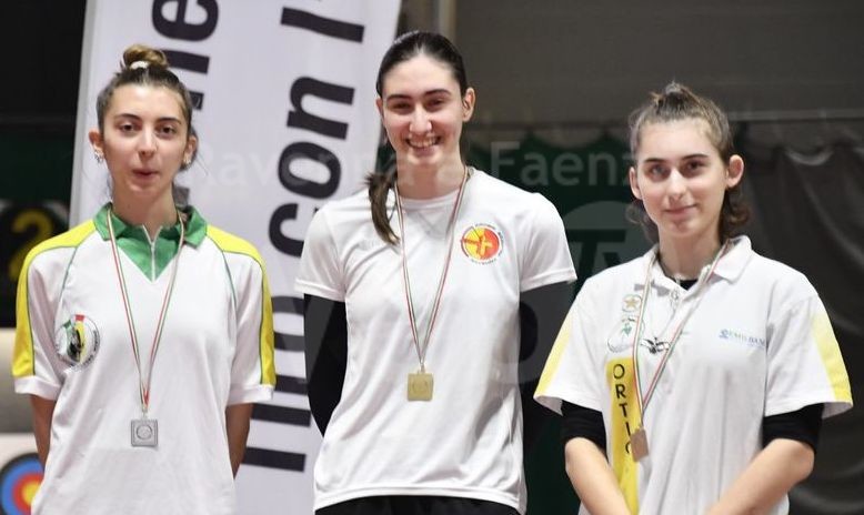 Straordinario successo di Matelda Miolo che a poco più di due settimana di distanza dalla vittoria ai Campionati Regionali AN svoltisi a Ravenna, e alla sua prima partecipazione, conquista il titolo di Campionessa Italiana di classe vincendo la medaglia d’oro nella categoria juniores arco nudo femminile.