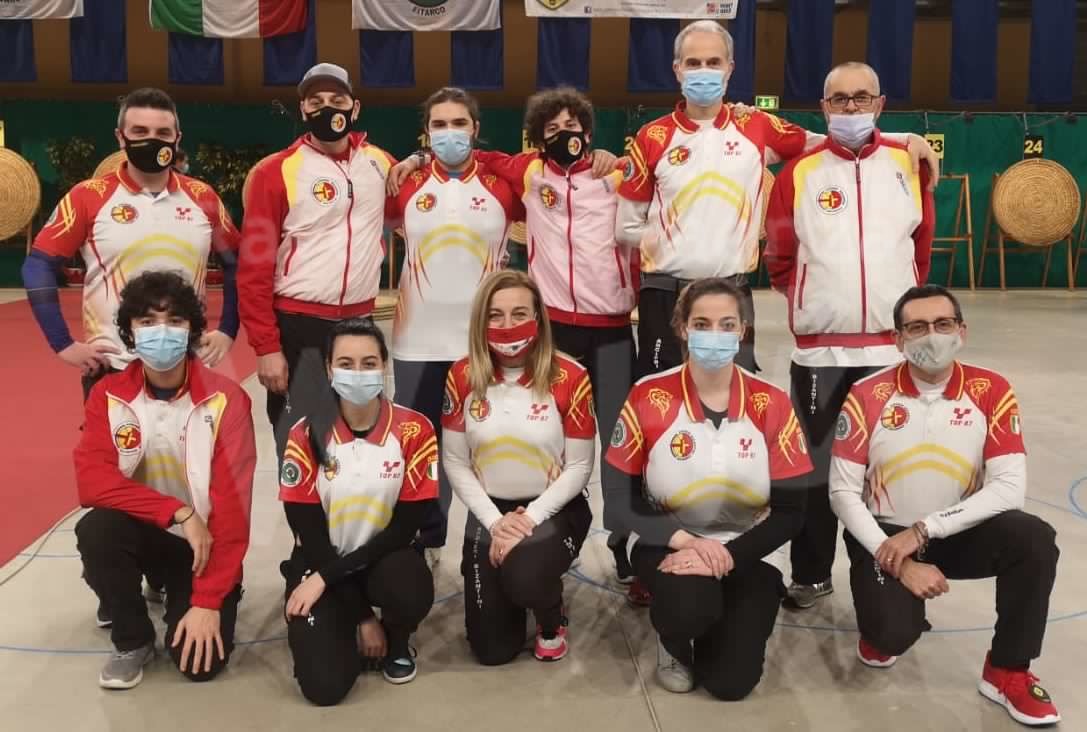 Sempre l’arco nudo, ma questa volta a squadre, fa conquistare ai giallorossi un podio per la categoria master maschile: Tozzola, Pizzi e Bordoni con il punteggio di 1384 (508+471+405) conquistano l’argento.