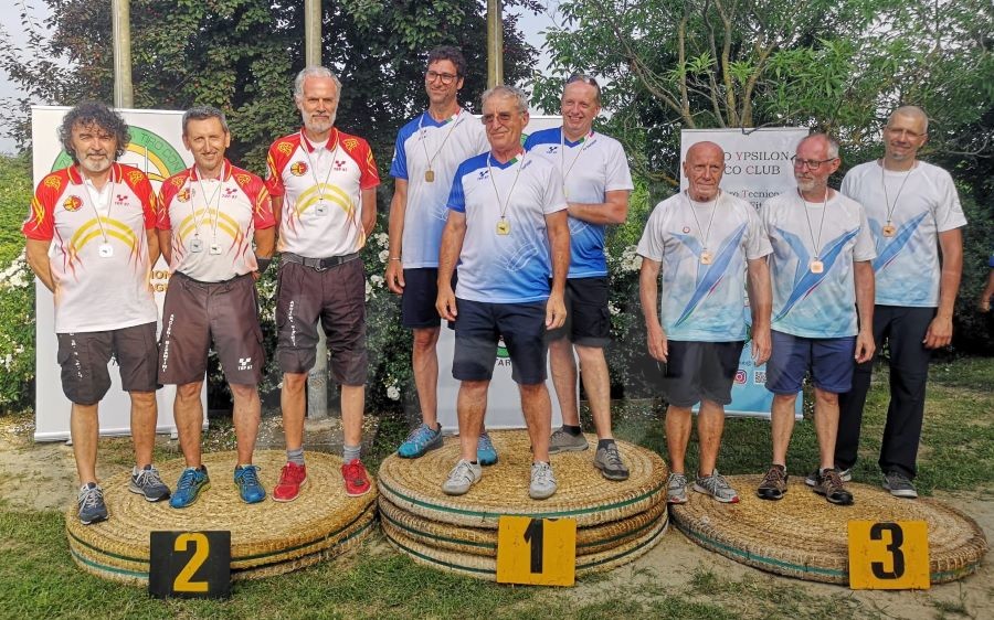 Tozzola-Pizzi-Venturi vincono sull’Ypsilon Arco Club in semifinale per 5-3 aggiudicandosi la finale per l’oro, dove però devono cedere il passo ai forti atleti del Re Bertoldo ma vincendo una meritata e storica, per la società, medaglia d’argento assoluta arco nudo maschile.
