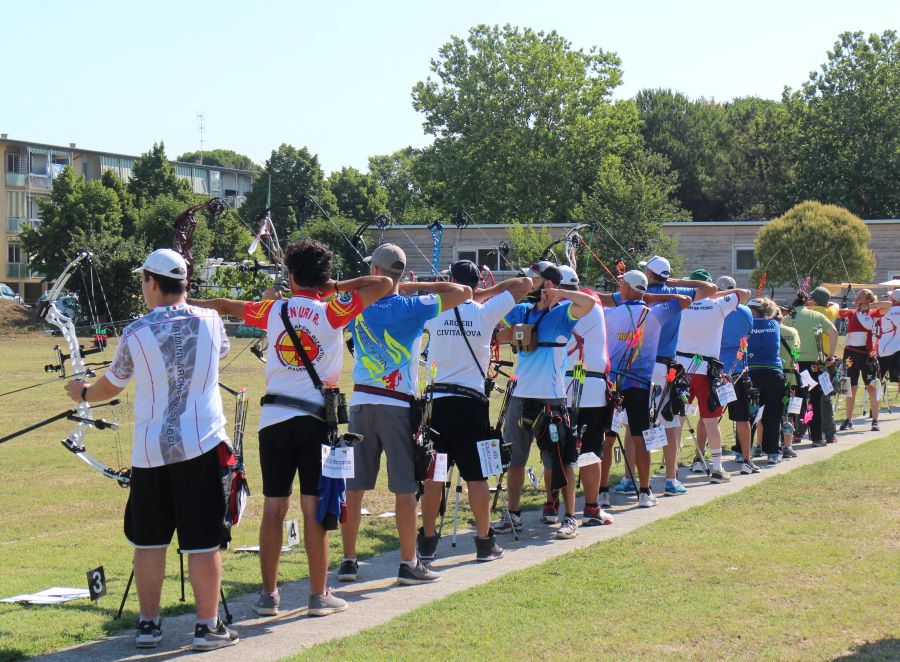 Sesta piazza per Denis Costantini nell’arco compound senior maschile con il punteggio di 652 (322+330), 7° Luca Ravaioli, sempre nella divisione compound, classe master maschile, con il punteggio di 597 (301+296).