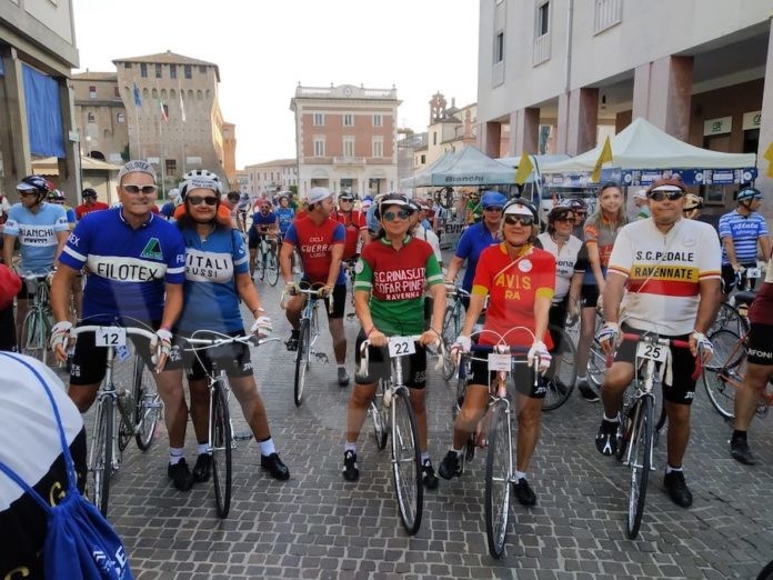 Domenica prossima, 29 ottobre, torna a Ravenna l’appuntamento con ‘La Divina’, evento ciclostorico 13ˆ e ultima tappa del ‘Giro d’Italia d’epoca’, la manifestazione nazionale dedicata appunto agli appassionati del cicloturismo e del ciclismo storico. Decine e decine di ciclisti – attualmente gli iscritti superano quota 150, alcuni dei quali provenienti anche dall’estero – torneranno quindi a percorrere le vie del centro in sella alle loro bici, da corsa e non, rigorosamente realizzate prima del 1987 e indossando abbigliamento ciclistico ‘vintage’. ‘La Divina’, organizzata dalla Fiab Ravenna, è giunta alla terza edizione e, come avvenuto due anni fa, la partenza e l’arrivo sono fissati a Ravenna (da piazza San Francesco) e il percorso principale, lungo 65 km, si snoderà attraverso i lidi sud e la pineta per giungere a Cervia – dove è fissato il ristoro di metà percorso – per tornare a Ravenna, facendo anche tappa al museo Classis. Previsto anche un percorso ‘corto’ di 35 km che da Ravenna porterà i ciclisti verso i lidi sud e la pineta, ma senza raggiungere Cervia.