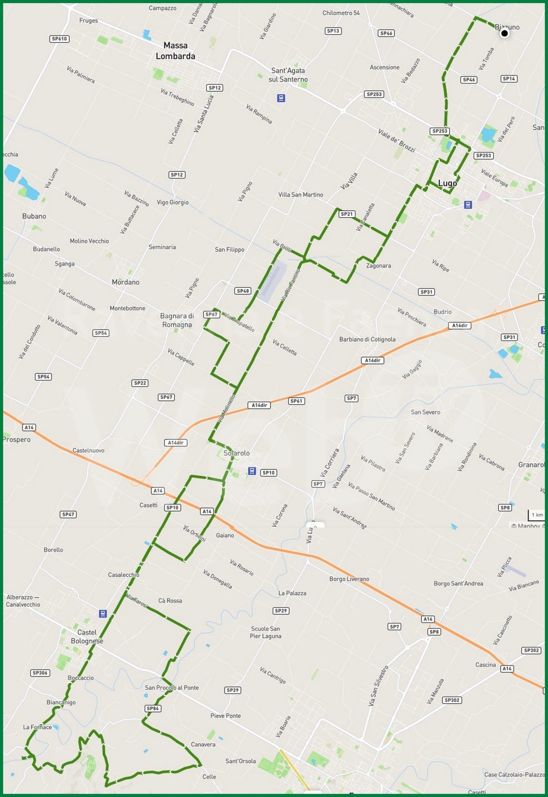 In alternativa, sarà possibile percorrere un itinerario di circa 63 km, segnato da ondulazioni più dolci e alla portata di tutti. Strade sterrate e asfaltate si alternano lungo il percorso.