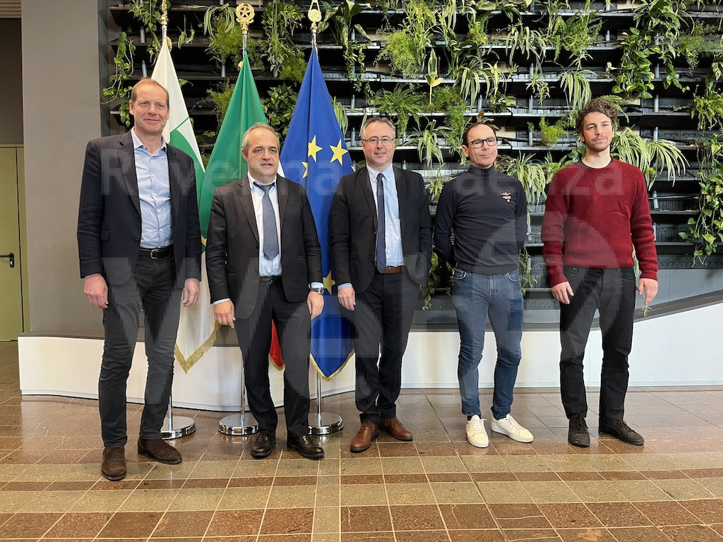Ad accogliere il direttore del Tour e il suo staff, Giammaria Manghi, capo della segreteria politica della Presidenza della Giunta e coordinatore organizzativo, Davide Cassani, presidente di Apt Servizi, l’agenzia di promozione turistica della Regione, Mattia Santori, consigliere delegato al Turismo e ai Grandi eventi del Comune di Bologna.