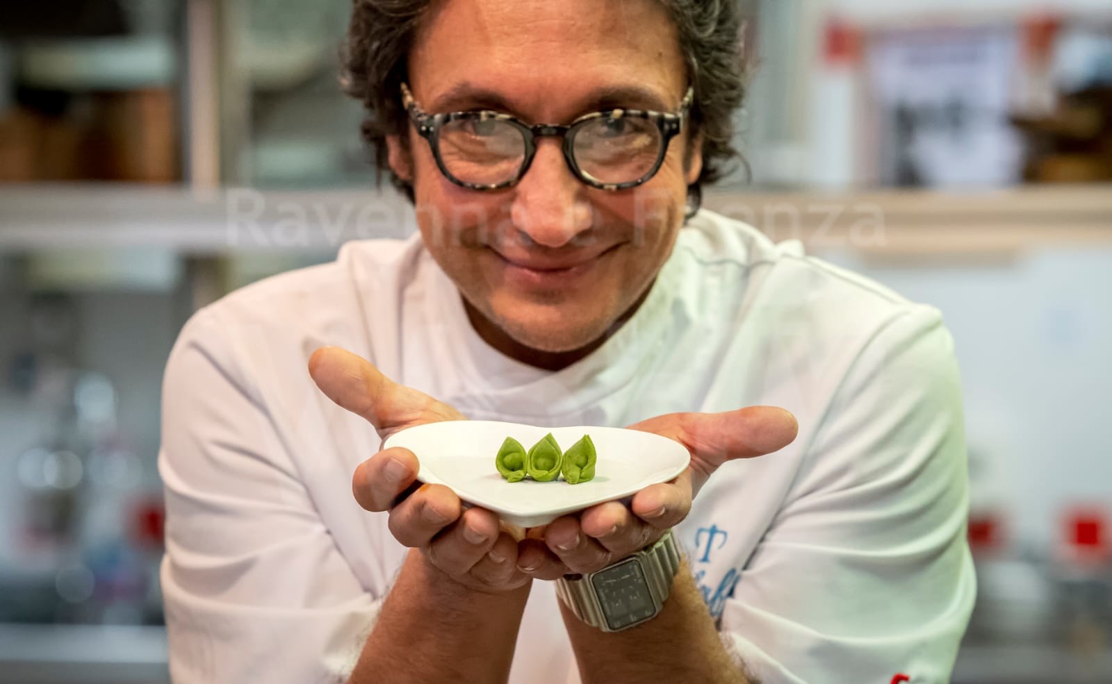 Nel profluvio di piatti di pesce, tra spaghetti allo scoglio e fritto misto di alici, alla sagra del “Pesce fa festa” attualmente in corso a Cesenatico, c’è chi ha deciso di uscire dal coro. E’ il celebre chef Vincenzo Spadafino, titolare dell’omonimo ristorante che sorge nella rotonda Don Minzoni a Milano Marittima, che presenta quasi in anteprima alla città il suo “tortello perla verde” premiato di recente “piatto dell’anno” dalla rivista “Food and Travel”.