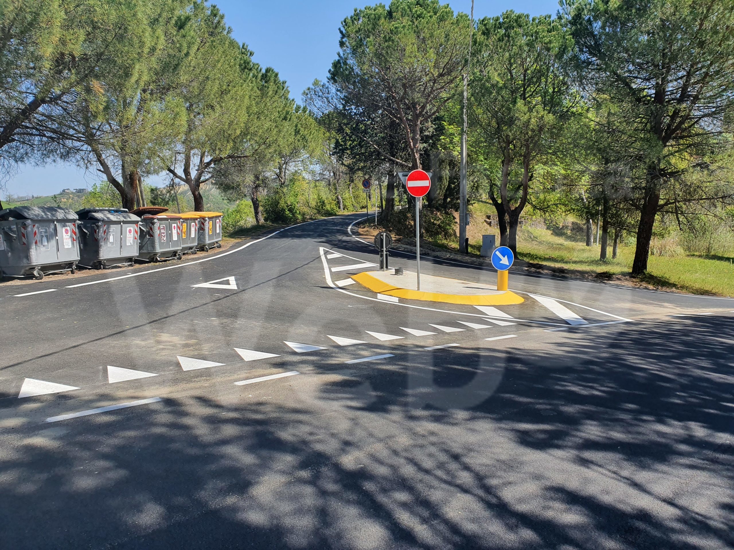Il primo lavoro riguarda la realizzazione di una nuova rotatoria spartitraffico tra le vie Mazzolano e Monte Ghebbio, necessaria all’installazione di un palo per l’illuminazione pubblica in un’intersezione stradale particolarmente buia, con l’obiettivo di renderla quindi più sicura.
