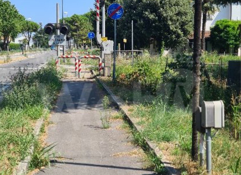 L’aumento del traffico su via Bonifica, tipico dell’afflusso al mare in questa stagione rende sempre più evidente la pericolosità, già più volte segnalata della parte non carrabile del passaggio a livello in Via Stradone.