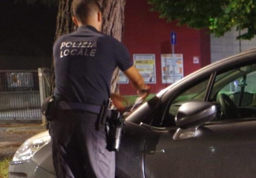 Intervento nella notte per la Polizia Locale di Ravenna, a seguito di fuoriuscita autonoma di un veicolo, in Viale dei Navigatori, nella zona dei lidi ravennati.