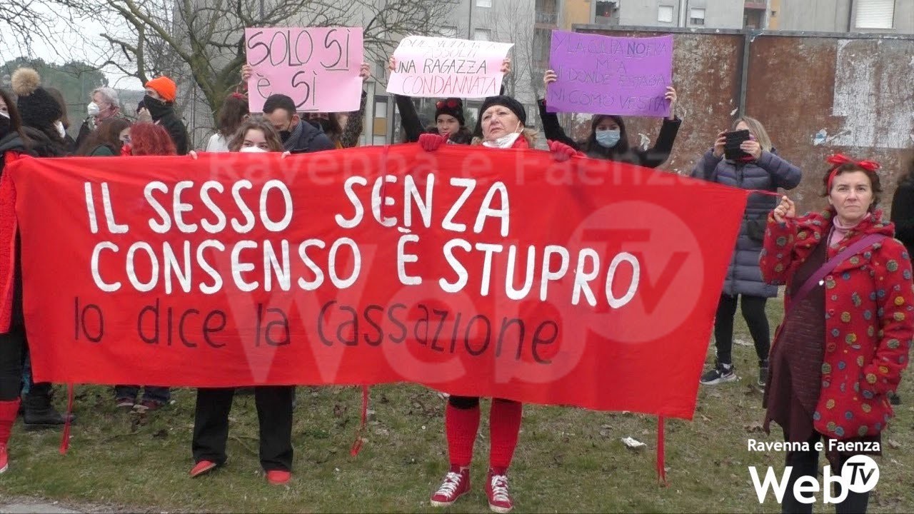 300 persone a Ravenna da Piazza del Popolo al Palazzo di Giustizia. Un corteo legato insieme da un lungo nastro rosso: “Il sesso senza consenso è stupro” il titolo dell’iniziativa indetta dalla Casa delle Donne, dai centri antiviolenza della provincia e alla quale hanno aderito tante associazioni in risposta e in protesta contro la sentenza di assoluzione emessa nel Tribunale di Ravenna nei giorni scorsi nel confronto di due trentenni accusati di violenza sessuale a danno di una diciottenne. I fatti risalgono ad ottobre 2017, la ragazza, in uno stato definito “di non piena lucidità” dopo una serata in un locale, viene accompagnata in un appartamento. Qui, dopo essere stata messa sotto una doccia, ha un rapporto sessuale con uno dei due uomini. Consensuale secondo la difesa, un abuso secondo l’accusa e secondo la giovane che denuncia i due trentenni. L’intera serata viene filmata con un cellulare, video che poi è stato allegato ai materiali del dibattimento. Ora si attendono le motivazioni della sentenza