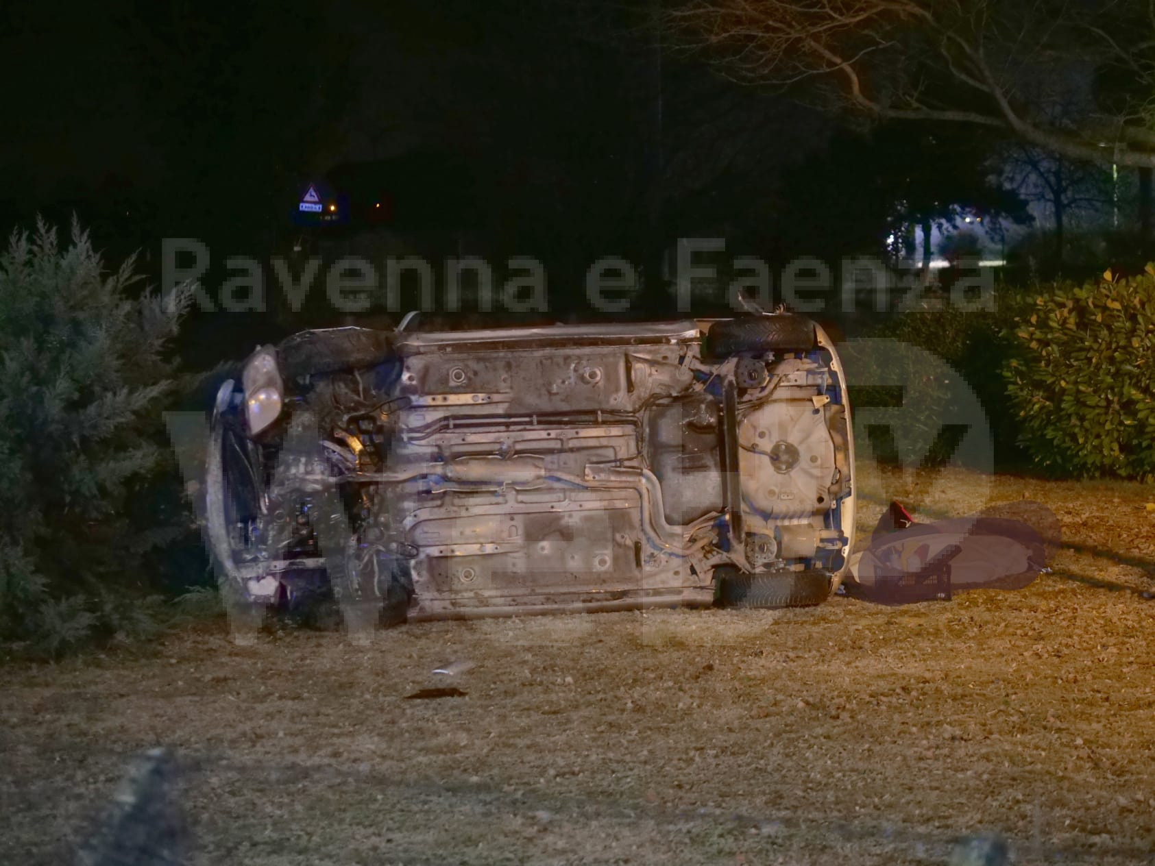 Lo schianto si è verificato attorno alla mezzanotte tra venerdì e ieri su via San Vitale. La Toyota Yaris condotta dal 36enne, per cause ancora al vaglio, ha tagliato una rotonda a velocità sostenuta terminando la corsa su un fianco nel giardino di un bar a quell’ora chiuso. Sul posto, 118 e vigili del Fuoco.