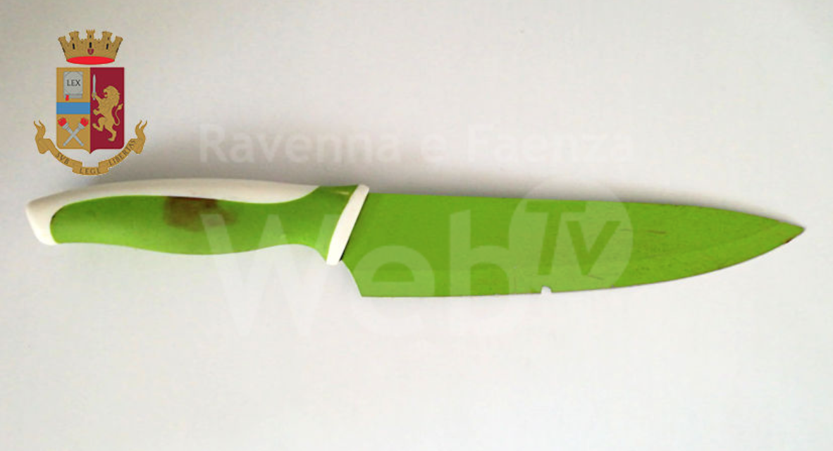Il coltello utilizzato nell’occasione è stato sequestrato e la sua lunghezza totale e risultata di 30 centimetri, di cui 20 di lama.