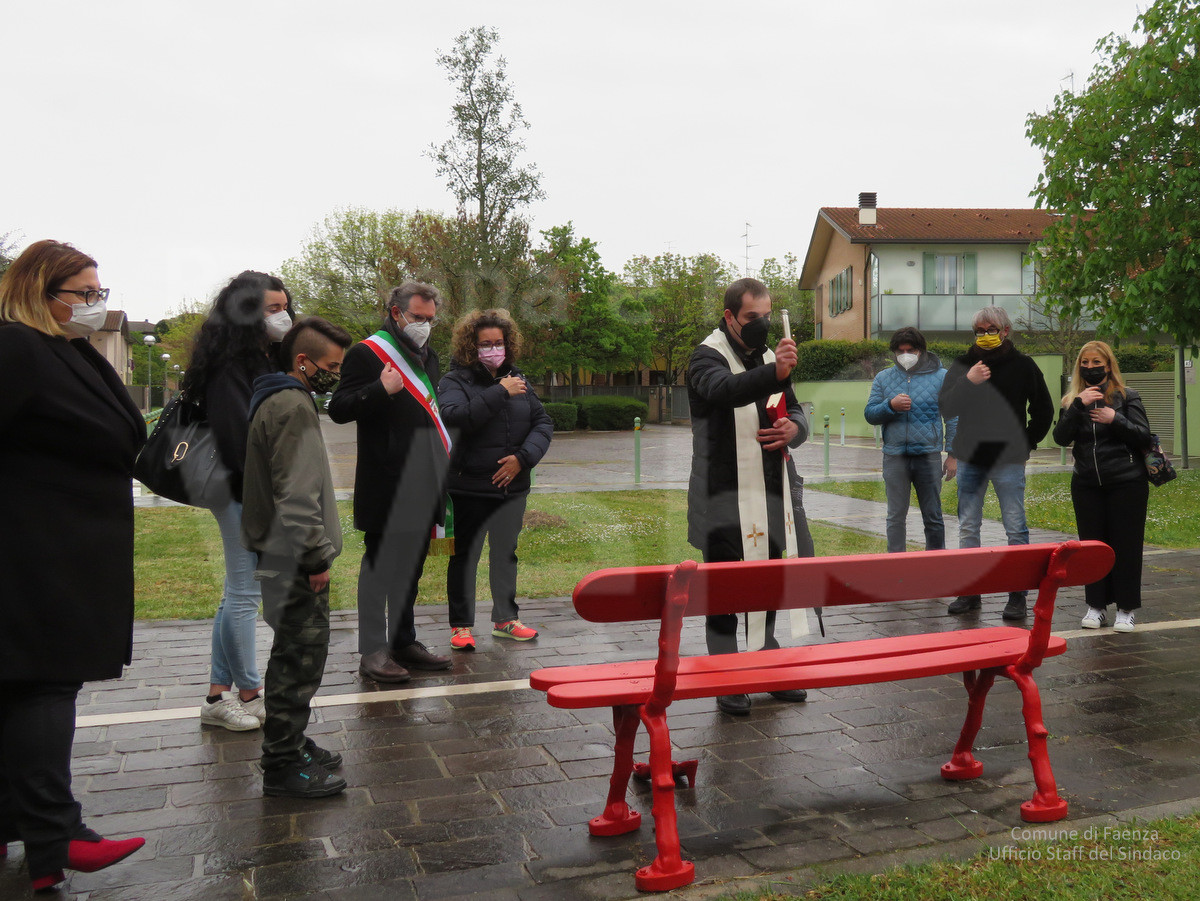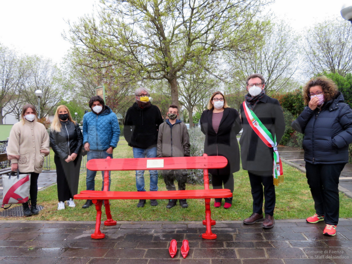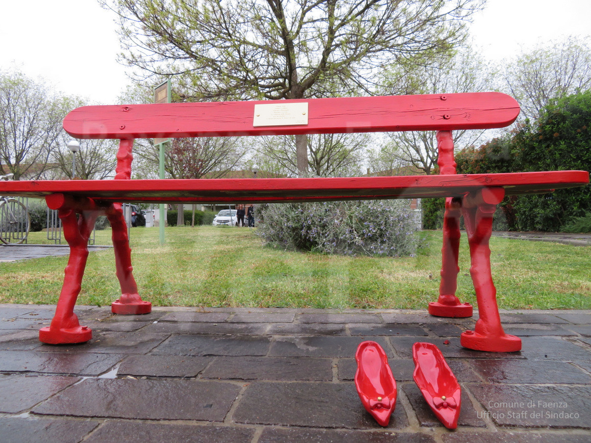 A distanza di qualche settimana dal gravissimo fatto di sangue che ha sconvolto la comunità faentina, al Comune di Faenza è arrivata richiesta, da parte di un’amica di Ilenia, di poter dipingere di rosso una panchina in suo ricordo per sensibilizzare la comunità sulla piaga della violenza nei confronti delle donne. Da questa prima azione, per volontà del compagno di Ilenia Fabbri, Stefano Tabanelli, è nata, in modo spontaneo, una rete di persone che hanno proposto all’amministrazione comunale manfreda di potersi occupare della piccola area verde che si trova poco distante dall’abitazione di Ilenia. La richiesta è stata accolta e, dopo aver sottoscritto un ‘Patto di collaborazione’, l’amministrazione ha concesso l’autorizzazione a effettuare alcune piantumazioni di nuovi alberi e la risistemazione del giardino. Per alcuni giorni, con la supervisione del ‘Servizio ambiente, giardini e decoro urbano’ del Settore dei Lavori Pubblici del Comune di Faenza, Tabanelli assieme a tanti altri volontari che hanno aderito, una cinquantina in tutto, hanno messo mano al parchetto, sfalciando l’erba e piantumando alcuni alberi: un melograno e una quercia da sughero, pianta amata da Ilenia. Queste piante faranno da cornice alla panchina rossa che è stata risistemata dalla faentina dalla quale è partita l’iniziativa e sul selciato, state installate, donate da un’artista faentina, un paio di scarpette in ceramica rossa, anche queste, simbolo della lotta alla violenza di genere.