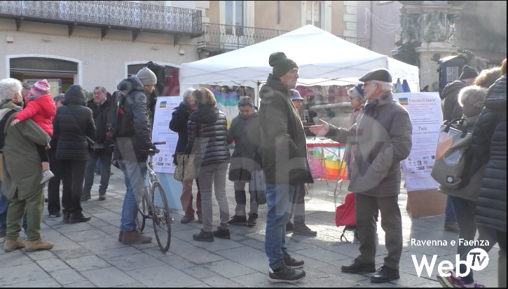 Presidio in Piazza della Libertà a Faenza per chiedere il cessate il fuoco nella striscia di Gaza: “Due Stati per due popoli, stessa dignità, stessi diritti, stessa sicurezza”.