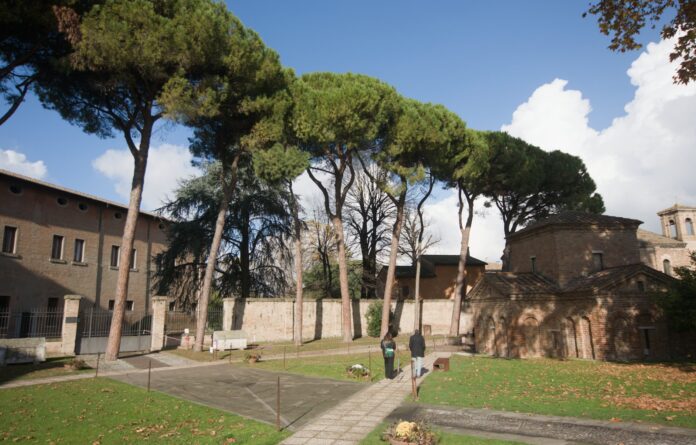 Questa la ricostruzione dei cittadini e di Italia Nostra: “Si parte infatti dal turista architetto milanese che, dopo la gita a Ravenna richiede a destra e a manca di abbatterli, e da lì per i meravigliosi pini monumentali di uno dei complessi dell’arte paleocristiana più preziosi al mondo, esistenti senza problemi da quasi cento anni, inizia la condanna. Subito i cittadini chiedono gli atti, ma senza che nulla sia inviato. Si presume che la Diocesi abbia blindato la procedura, ma perché? Poi, nell’avviso affisso attorno ai pini giovedì scorso, si legge: “Questa Soprintendenza sollecita codesta Archidiocesi di precludere immediatamente gli spazi afferenti alle alberature in questione, come da nota Prefettizia del 12 maggio 2025”. Se il Prefetto ha scritto il giusto, sono passati oltre sei mesi con crollo imminente e migliaia di turisti in transito e nessuno ha provveduto? Nel frattempo, gli alberi sono rimasti saldamente al loro posto, in barba al terrorismo e nonostante le svariate tempeste di vento che si sono susseguite. Tutto questo appare, oseremmo dire, ridicolo, ma a farne le spese sono alberi che costituiscono un contesto preziosissimo unico al mondo, e che quindi rischiano di essere spazzati via sull’onda di suggestioni, approssimazioni e passaggi tenuti blindati”.