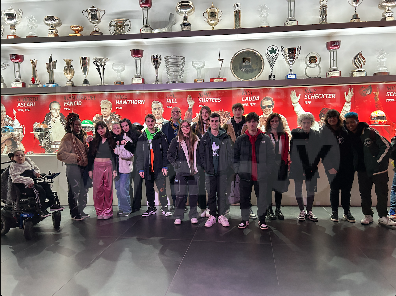 Accompagnati dal professore Michelangelo Esposito e dalla professoressa Monica Bertoni, i ragazzi hanno fatto una visita al Museo Ferrari di Maranello dove gli è stata raccontata la storia dell’azienda Emiliano-Romagnola partendo dalle origini, dalle difficoltà dovute anche al periodo di guerra, dalla caparbietà e dalla lungimiranza del suo fondatore Enzo Ferrari.