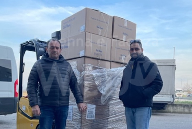 La associazione “Casa della Speranza Onlus“ di Castiglione Torinese presidente Cav. Giuseppe Lazzarotto, ha donato tre bancali di dolciumi tra i quali Panettoni e profiteroles alle associazioni Ravennati: Punto di incontro Francescano ( iceve la volontaria Arianna Capio), Associazione volontari San Rocco ODV (riceve Gennaro Congedo) e Coop. sociale la Pieve Onlus (riceve Daniele Fuzzi).