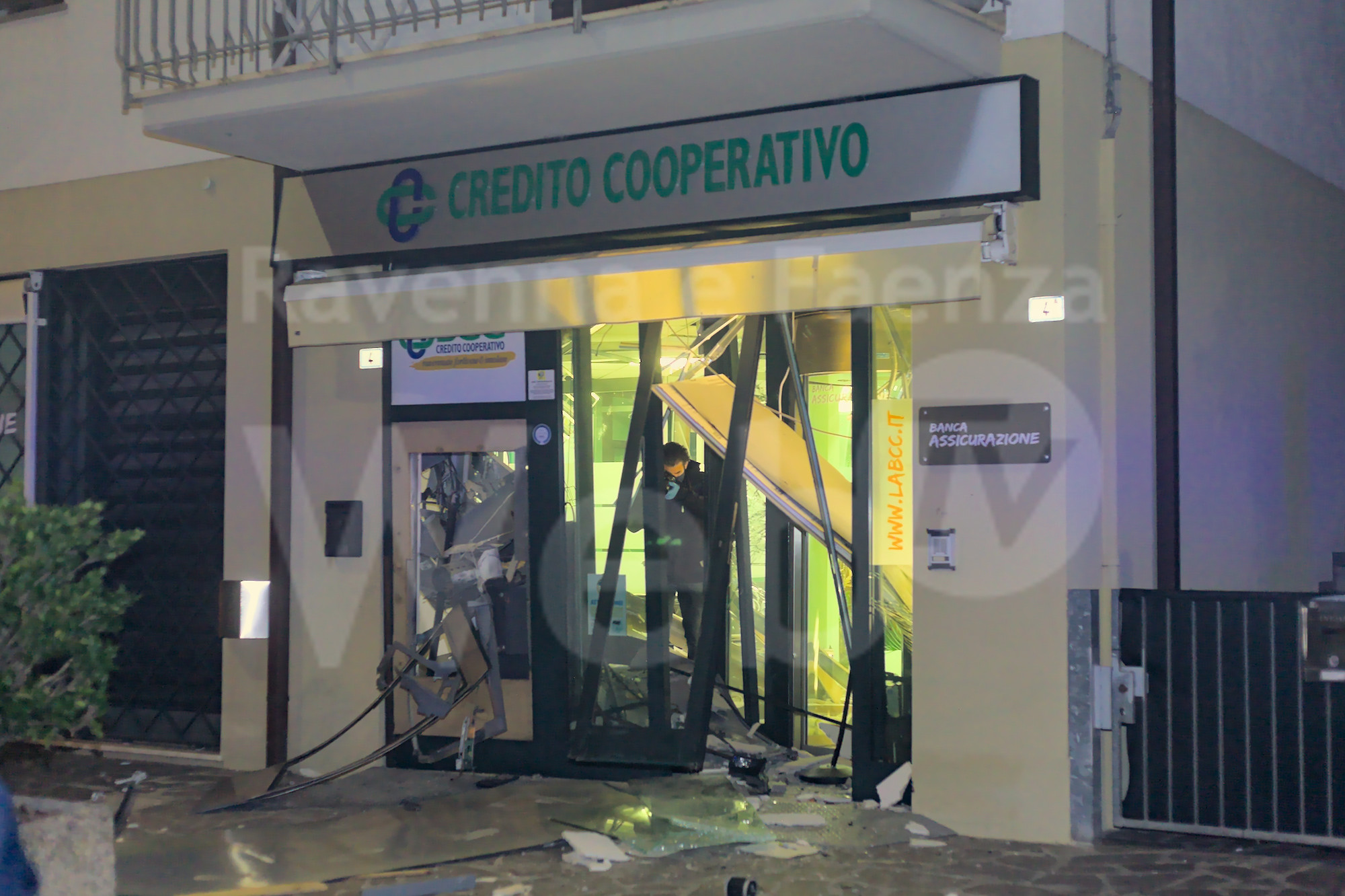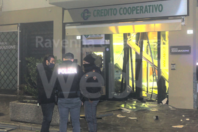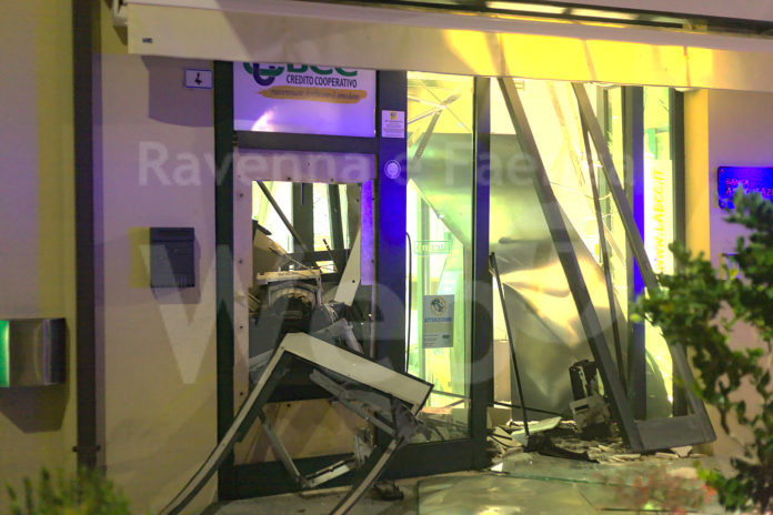 Un’esplosione nella notte a squarciato la filiale di Classe della Banca Credito Cooperativo in via Zuccherificio, nei pressi della Basilica di Sant’Apollinare. Intorno alle 4 di notte un gruppo di ladri, dal numero ancora imprecisato, ha assaltato lo sportello bancomat, facendolo saltare. La potenza dell’esplosione ha devastato gli uffici della filiale a piano terra e fatto tremare l’intero complesso abitativo. I residenti, spaventati, sono scesi in strada temendo il peggio. L’ingresso della banca è andato completamente distrutto, gli uffici inagibili, lo sportello bancomat è stato prelevato. È ancora in via di quantificazione il bottino sottratto dai ladri. Dopo il boato, in via Zuccherificio sono accorsi Polizia e Carabinieri che si sono messi sulle tracce della banda di malviventi. In zona sono presenti alcune telecamere di videosorveglianza che potrebbero aiutare gli inquirenti nelle indagini.