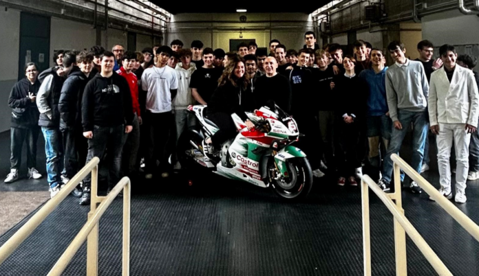 Una vera moto del team LCR Honda MotoGP è entrata per un giorno all’Istituto Tecnico Industriale “Nullo Baldini” di Ravenna, trasformando la scuola in un laboratorio di innovazione e passione per la tecnologia. L’evento, intitolato “La MotoGP in Aula”, è stato realizzato nell’ambito di un progetto pensato e curato dalla professoressa Alessandra Fanti, docente di Fisica, con l’obiettivo di avvicinare gli studenti alla scienza applicata attraverso un’esperienza concreta e coinvolgente.