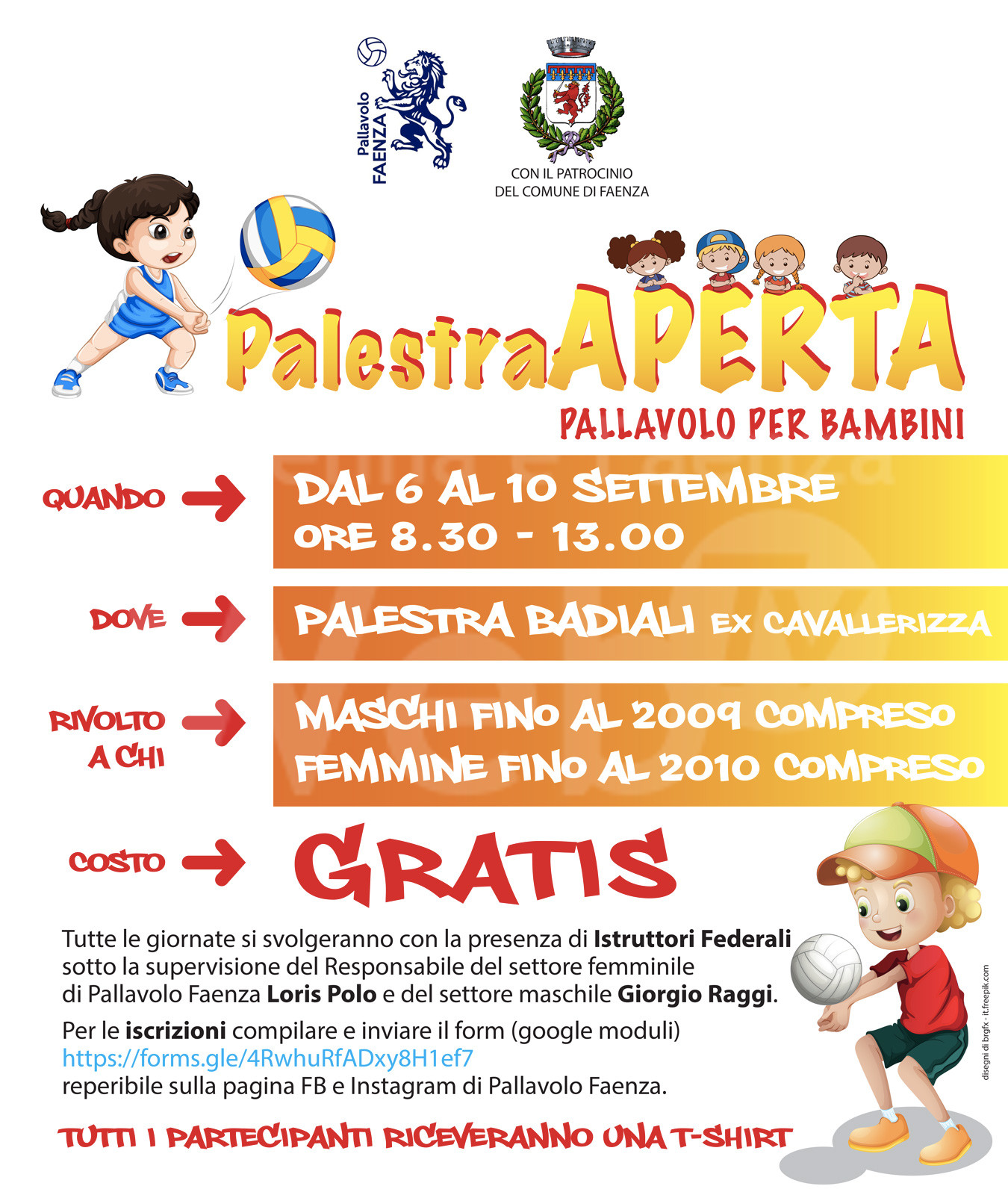 Essendo PalestrAperta rivolta agli Under 12 non sarà obbligatorio il Green Pass e dunque adotteremo il protocollo anti Covid-19 utilizzato dalla Pallavolo Faenza nella stagione 2020/21 che si è rivelato ottimo per disputare l’attività sportiva nella massima sicurezza”.
