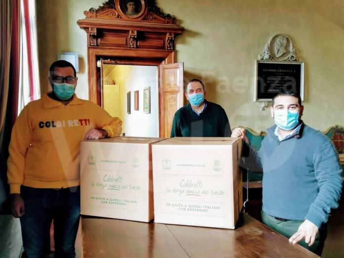 Gli imprenditori Coldiretti della provincia di Ravenna, in tandem con Campagna Amica, stanno consegnando nelle mani dei sindaci dei Comuni del territorio o direttamente alle famiglie pacchi di generi alimentari 100% made in Italy (contenenti ciascuno 100 kg di cibo tra pasta, latte, olio, passata di pomodoro, eccetera). La campagna solidale in corso d’opera, a tutti gli effetti la più grande offerta gratuita di cibo mai realizzata dagli agricoltori, è attiva in tutta Italia ed è rivolta ai nuovi poveri “invisibili” che, a causa della pandemia, hanno visto un repentino peggioramento della propria condizione economica.