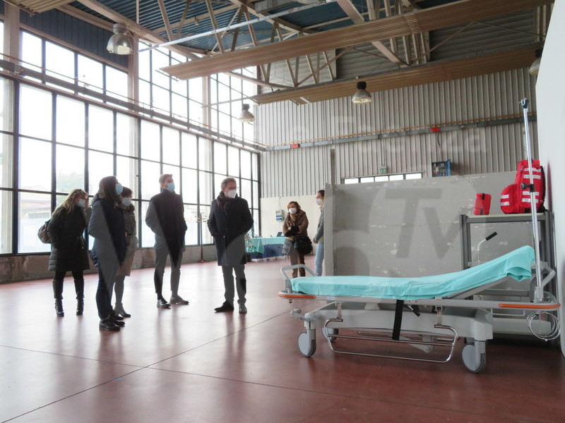 Questa mattina l’amministrazione comunale ha effettuato, assieme al personale dell’Ausl, un ultimo sopralluogo per verificare che tutto fosse pronto. Le persone che nei giorni scorsi si sono prenotate, potranno arrivare al centro fieristico accedendo dal cancello con l’auto o con altri mezzi. L’ingresso avverrà esclusivamente dal parcheggio verso la rampa che conduce alla Sala Zanelli. Qui gli utenti che dovranno ricevere la vaccinazione e i loro accompagnatori saranno accolti dal personale volontario che, dopo aver fatto igienizzare le mani e aver preso la temperatura corporea, di volta in volta, in base all’orario indicato, verranno inviati al primo step, quello dell’anamnesi. Successivamente ci si sposterà dalla Sala Zanelli al corridoio dove sono state installate due postazioni; qui il personale registrerà gli utenti. Finita la parte burocratica ci si dovrà spostare, attraverso un percorso protetto, verso l’ingresso del ‘Padiglione A’; qui, dopo un’ultima fase di registrazione, verrà indicato il numero del box (dall’1 al 4) al quale rivolgersi. Terminata la vaccinazione le persone verranno fatte accomodare nelle sedie predisposte in un’altra area e lì dovranno sostare per 15 minuti prima di poter andare via per verificare di non avere reazioni al farmaco.