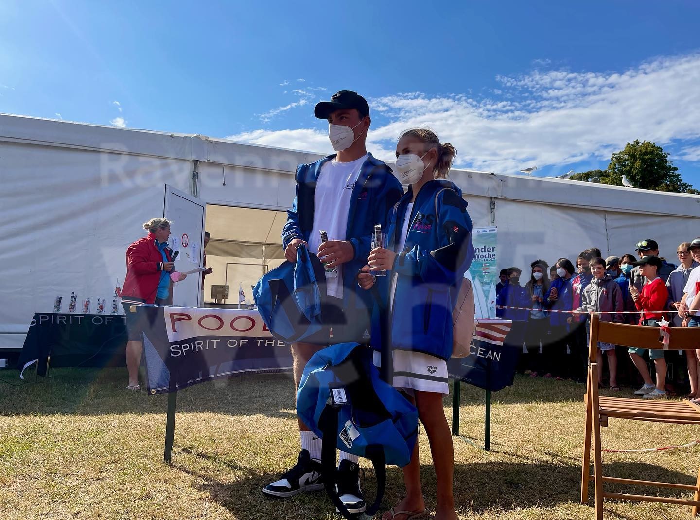 Entrati in flotta Gold come settima forza della classifica, Riccardo e Anna Cecchetto, in Germania da aggregati al gruppo del Club Nautico del Savio i cui atleti hanno condiviso il percorso di allenamento con quelli del Circolo Velico Ravennate, hanno dapprima faticato per poi far valere la loro propensione per il vento forte. Un cambio di passo valso un miglioramento del ranking e la conseguente conquista di un brillante quinto posto assoluto dietro ai neo campioni iridati francesi Lisandru Bunel e Thomas Kuntze.