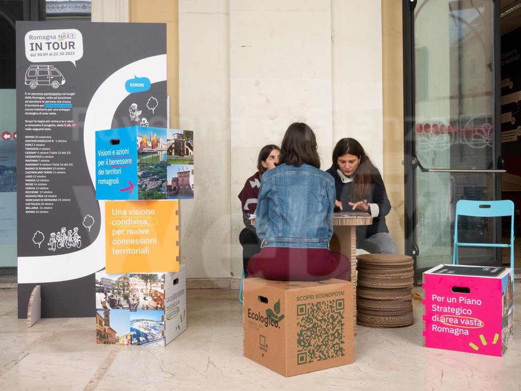 Romagna Next in Tour è un percorso partecipativo itinerante – realizzato grazie ad un apposito “ufficio mobile” attrezzato, in movimento da città a città – che ha lo scopo di incontrare ed ascoltare direttamente le persone che vivono sui diversi territori e dialogare con loro, per immaginare insieme nuove traiettorie per uno sviluppo strategico di area vasta.