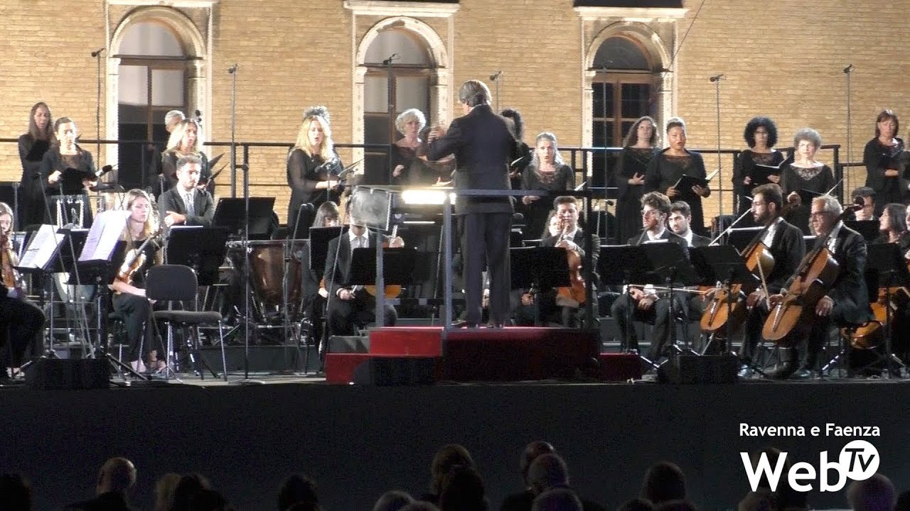 Le note delle Laudi alla Vergine Maria di Giuseppe Verdi cantate dal Coro del Maggio Musicale Fiorentino dirette da Riccardo Muti hanno aperto il concerto straordinario delle celebrazioni per i 700 anni dalla morte di Dante Alighieri. Il concerto ai Giardini Pubblici è arrivato al termine della giornata di commemorazione iniziata in Piazza San Francesco con la lettura della Divina Commedia, la messa di Dante e alla Tomba la cerimonia dell’olio.