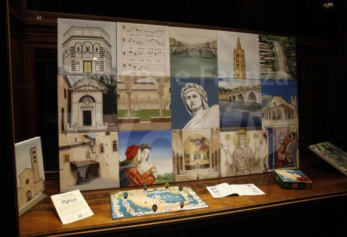 La Cassa di Ravenna S.p.A. espone, presso le proprie vetrine del “Private Banking” di Ravenna in Piazza del Popolo n.30 e in quella della vicina Agenzia 1 di piazza del Popolo, il gioco istruttivo da tavolo dal titolo: “VianDante – segui il cammino del Poeta”, ideato e realizzato dal Gruppo bancario La Cassa di Ravenna assieme alla Fondazione Cassa di Risparmio di Ravenna, nella ricorrenza del Settimo centenario della morte di Dante Alighieri.
