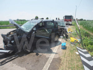 Un violento incidente frontale, poco dopo mezzogiorno, a Mezzano, in via Zuccherificio all’incrocio con via Cerba.