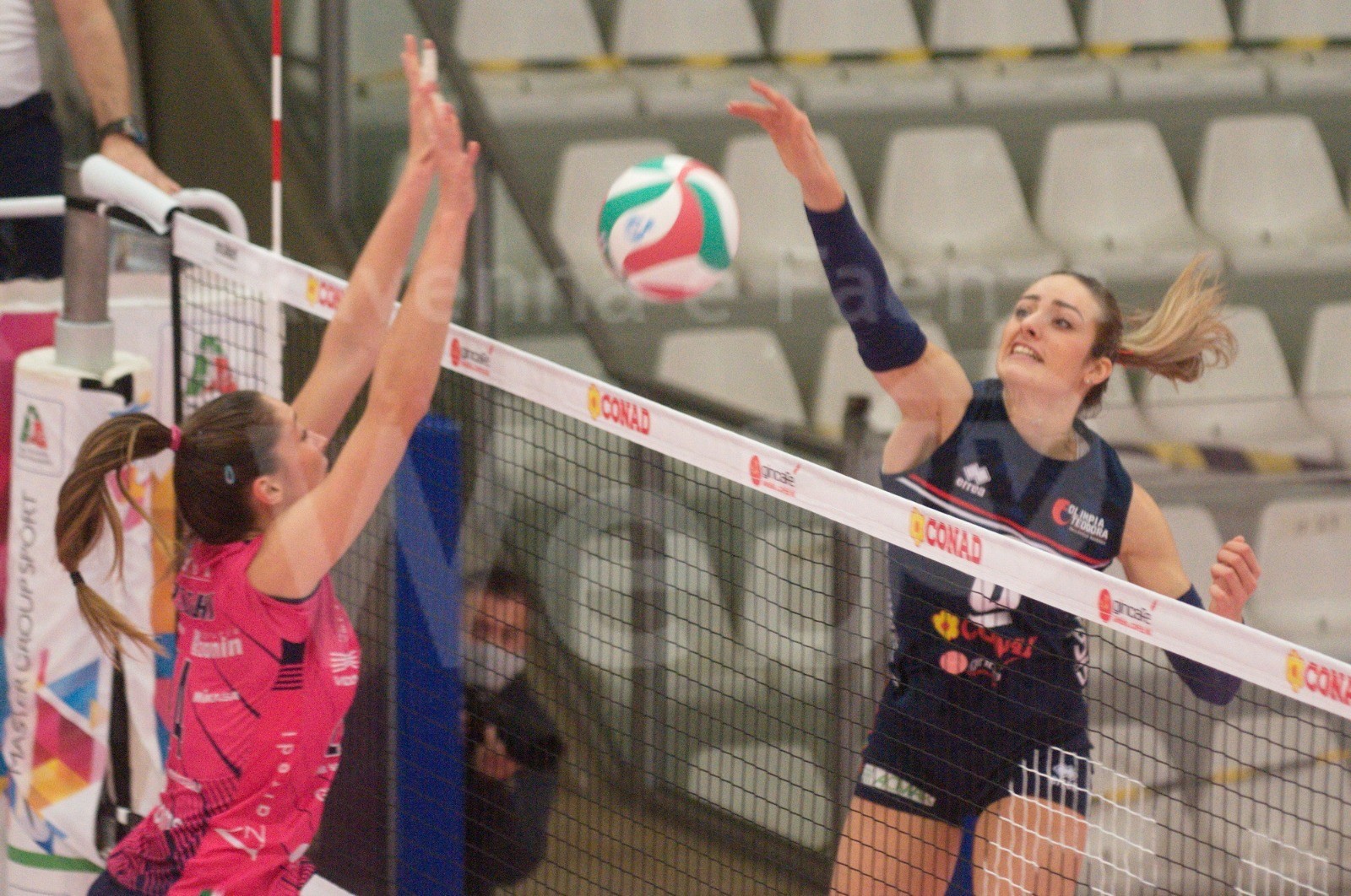 Nel secondo set sono 2 ace di Torcolacci a lanciare l’Olimpia Teodora, che mantiene il vantaggio sul 5-2 con un’altra battuta vincente, stavolta di Kavalenka. Il muro di Piva vale il 7-4, ma le ospiti tornano sotto sull’8-7 e ritrovano la parità a quota 9. Talmassons si porta avanti sull’11-12 e allunga fino al 14-17 grazie all’ace di Smirnova, ma il muro di Torcolacci lancia la riscossa ravennate (15-17) e le padrone di casa rimettono in equilibrio il parziale sul 19-19. Due attacchi di Guasti valgono il 21-19, ma le friulane non mollano e sorpassano sul 21-22. Il finale della Conad è però perfetto e i muri di Piva e Guidi ribaltano tutto sul 24-22, con Ravenna che chiude il set al primo tentativo per 25-22.