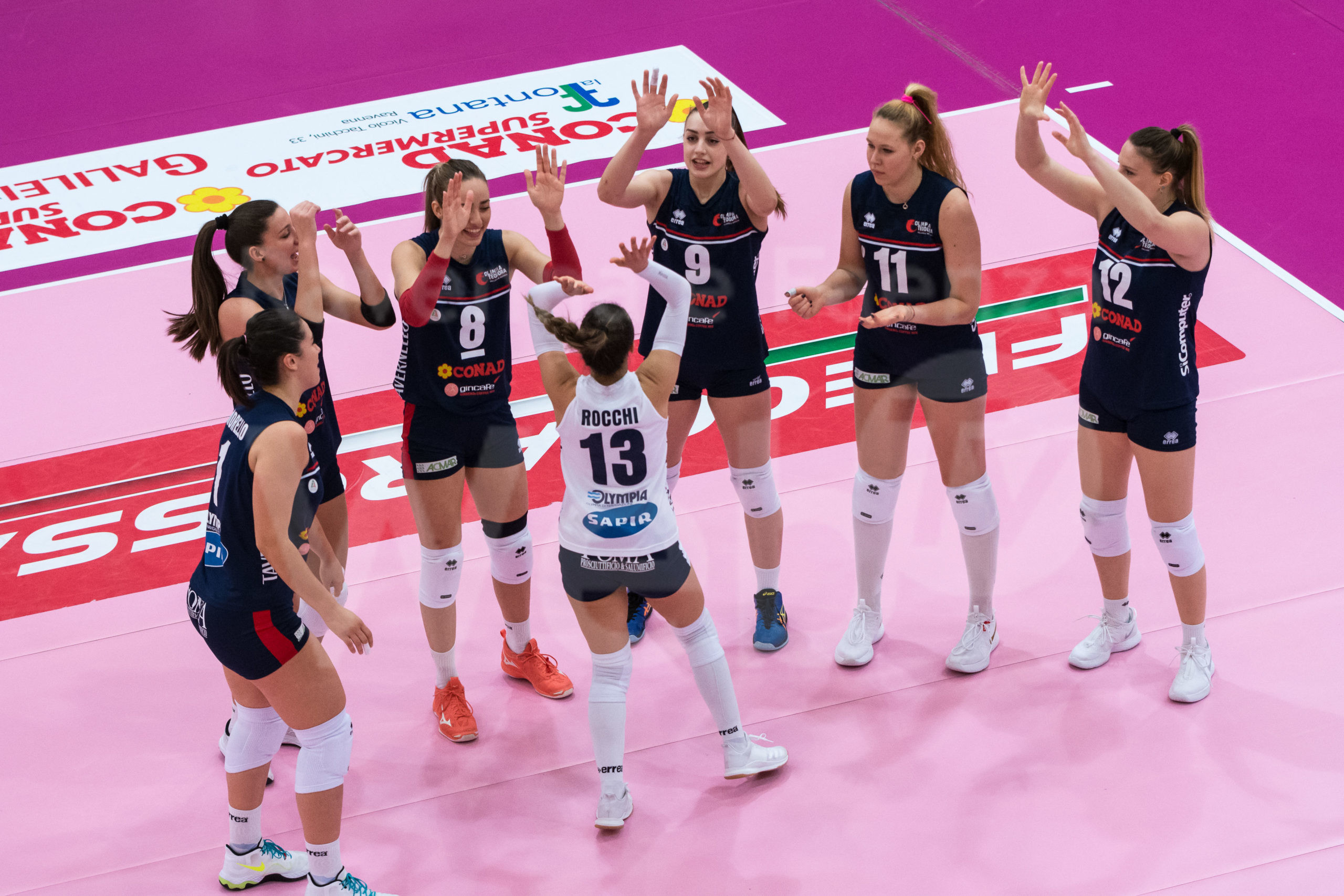 Dopo due belle vittorie in rimonta, entrambe per 3-1, ottenute a Olbia e al PalaCosta contro Montale, la Conad Olimpia Teodora chiude la settimana con la terza gara in 7 giorni domani, domenica 28 marzo, alle ore 17, a Busto Arsizio.