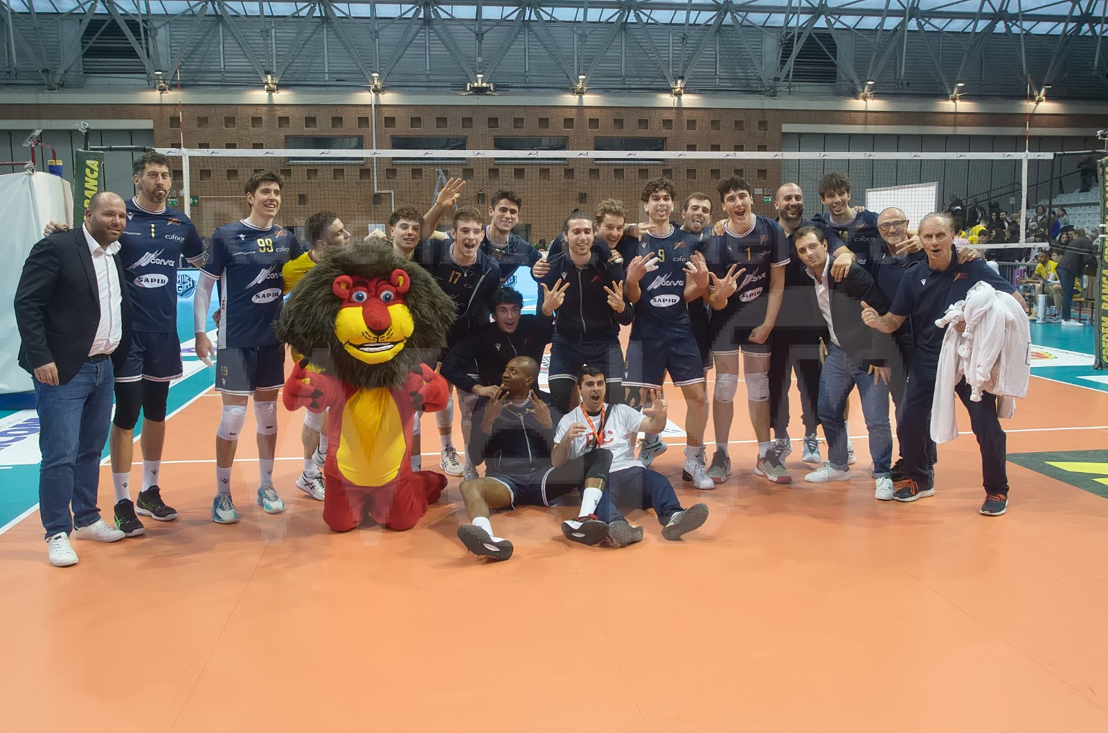Il commento di coach Bonitta “Abbiamo vinto il primo set in carrozza ma poi si è visto dal secondo set che non siamo ancora in grado di gestire bene l’aspetto mentale. Castellana ha giocato bene in quel frangente ma noi ci siamo un po’ adeguati al loro gioco, abbiamo sprecato qualche pallone di troppo. Poi nel terzo e nel quarto set abbiamo saputo conquistare il vantaggio che poi i ragazzi sono stati bravi a mantenere e gestire. Era importante vincere per mantenere il quarto posto e ora è chiaro che dobbiamo fare tre punti anche a Pineto per non dover dipendere dai risultati delle altre”.