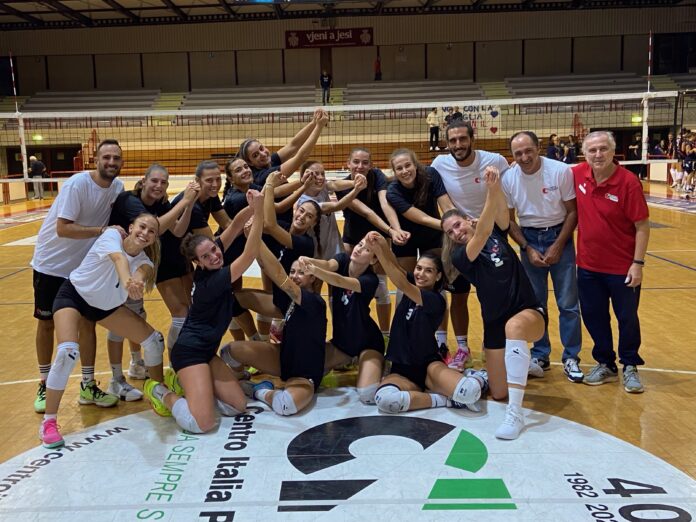 La squadra di casa diretta da coach Luciano Sabbatini si schiera con capitan Peretti in regia, Moretto opposta, Castellucci e Paolucci in posto 4, centrali Canuti e Milletti, libero Cecconi.