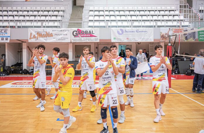Primo set di marca bolognese con gli ospiti che scappano 5-9 e 11-16, il gioco ravennate latita e il divario aumenta fino al  17-25 finale.