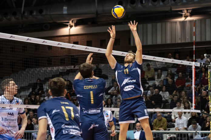 Finale di regular season in viaggio per la Consar. Domani, la partita di Cuneo (si gioca alle 18, in diretta su VBTV, la piattaforma streaming di Volleyball World, differita martedì 25, alle 15 sul canale 78 di Tele Romagna) è la prima di tre trasferte che attendono Goi e compagni in questa parte finale della prima fase. Dopo Cuneo ci saranno Cantù e Macerata, all’ultima giornata dopo la gara interna contro Acicastello. Blindata la qualificazione ai playoff domenica scorsa, domani la squadra di Valentini può raggiungere un altro traguardo intermedio: assicurarsi uno dei primi quattro posti rendendosi irraggiungibile dalla quinta, che è proprio la formazione piemontese. Ravenna è terza con 46 punti, la MA Acqua San Bernardo è quinta a quota 37: con un successo la Consar sarebbe certa di concludere in una delle prime quattro piazze. Ma per fare questo c’è da andare oltre l’alto ostacolo costituito da Cuneo. All’andata, al Pala De Andrè, la compagine di Valentini si impose 3-1 al termine di una gara ben giocata e interpretata, con l’ex Alessio Tallone, a Cuneo nel 2021/22, miglior marcatore dei suoi con 19 punti, terzo suo miglior bottino in questa annata. Dall’altra parte della rete non bastarono a Cuneo i 22 punti dell’altro ex Giulio Pinali, seconda miglior prestazione stagionale.
