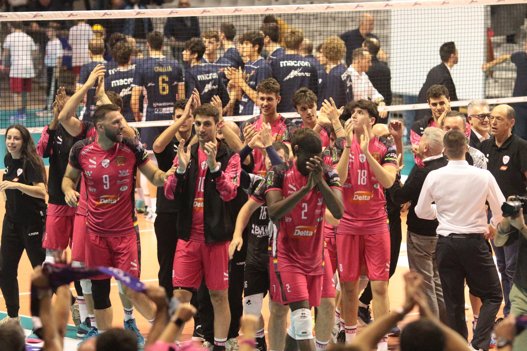 Spingono sull’acceleratore Goi e compagni nel quarto set (5-2), i nerofucsia hanno il merito di non farli andare via (6-5) e con Magliano e Sperandio a muro mettono la freccia (7-9). Andreopuolos segna il +3 (8-11). Il solito Guzzo ci mette una pezza, ma la Delta allunga ancora (10-15) su una Consar ora in difficoltà nel costruire il suo gioco. Valentini si riaffida a Zlatanov che ripaga subito segnando due punti consecutivi, poi ancora Guzzo carica il destro ed è -2 (13-15). Ma Porto Viro riparte (14-18), sfruttando anche qualche errore ravennate (15-20) e si prende il set portando la gara al tie-break.