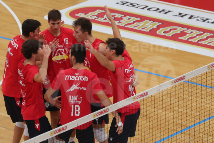 Si avvicina l’inizio del campionato di A2 e sale di tono la Consar Rcm. Contro la Conad Reggio Emilia, nel quarto allenamento congiunto di questa fase di preparazione Goi e compagni sfoggiano una buona prestazione mostrando una crescita evidente in tutti i fondamentali. E’ il primo test per Bovolenta e Orioli, freschi reduci dall’oro europeo, e subito inseriti nello starting six, e c’è il ritorno di Pinali, che ha smaltito il fastidio muscolare che lo ha fermato nei due precedenti test, e che timbra 12 punti, con un 55% in attacco. Anche questa prova amichevole termina 2-2: primo set perso in volata, dopo un lungo equilibrio, secondo e terzo set vinti con grande autorità, e quarto set in cui Ravenna sconta il giro a vuoto accusato a metà del parziale (da 5-8 a 10-16).