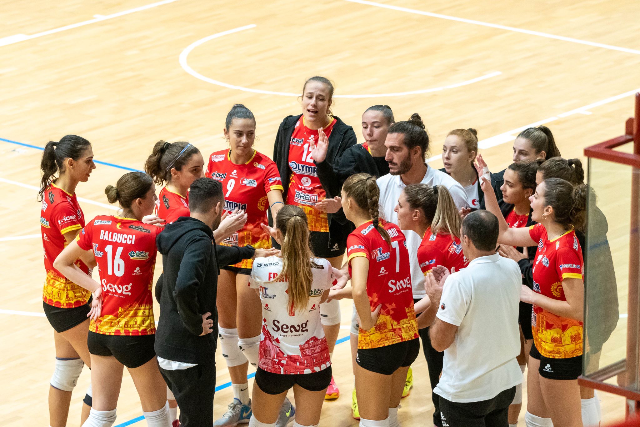 Olimpia Teodora: Franzoso (L1), Poggi 1, Marchesano 14, Pirro 14, Fabbri 5, Casini 15, Gabrielli; Toppetti 1, Bendoni, Nika, Balducci 8. N.e.: Fusaroli, Benzoni, Piraccini (L2). All.: Rizzi. Ass.: Falco.