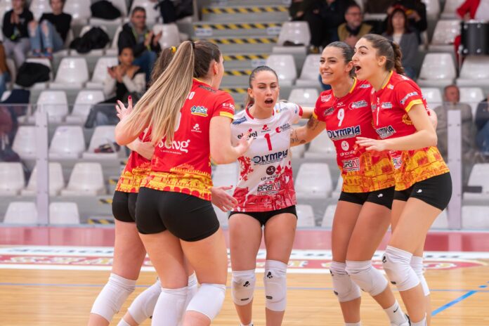 Al contrario un’Olimpia Teodora dai due volti, dopo avere vinto agevolmente il primo set e perso inspiegabilmente in maniera netta il secondo, era anche riuscita a portarsi nuovamente avanti 2-1 grazie ad una rimonta quasi incredibile, ma ha poi subito il recupero delle ospiti, che hanno continuato a crederci.