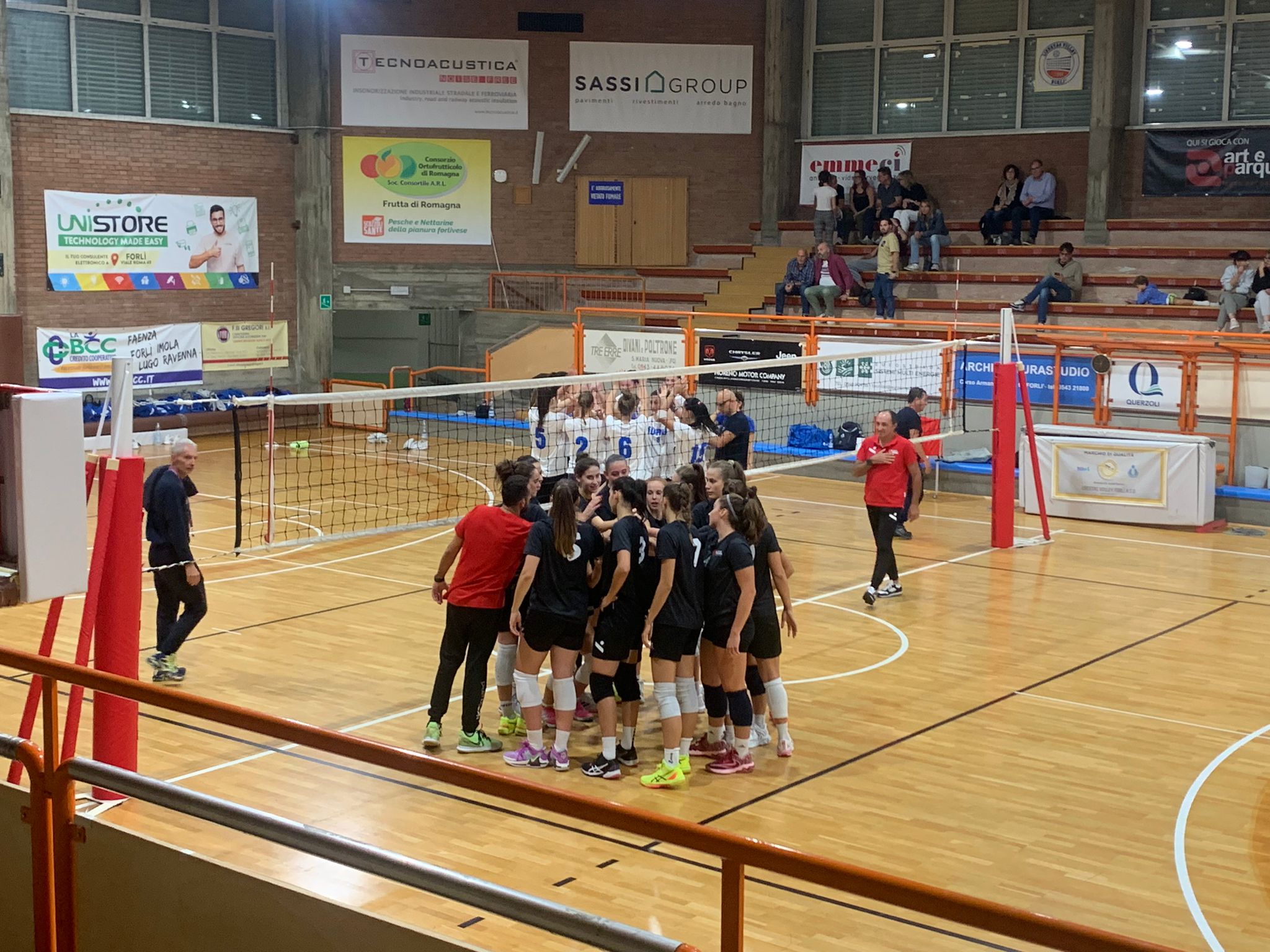 Il terzo set è nuovamente equilibrato, ma questa volta è Forlì a conquistare un minimo vantaggio fin dall’inizio. L’Olimpia Teodora resta a contatto, ma come nel primo set subisce un brutto parziale nella fase finale (16-21), cedendo il passo per 21-25.