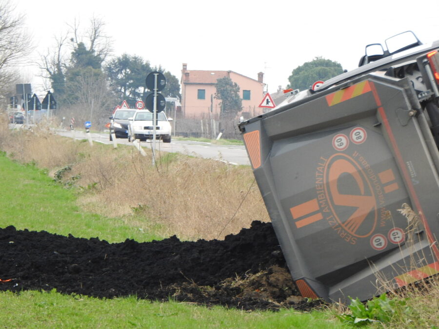 È successo oggi pomeriggio intorno alle 13 quando, lungo la Via reale a Voltana, un camion che trasportava materiale organico si è ribaltato ed è finito fuori strada.