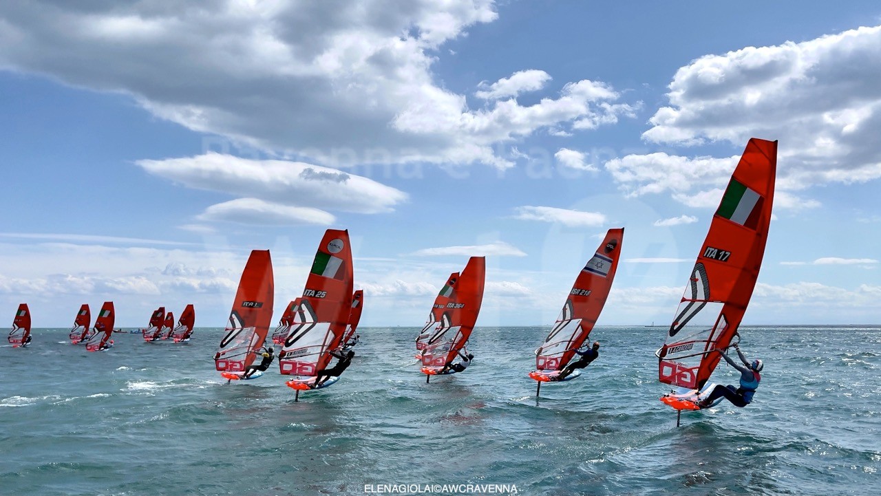 Per i più giovani Under 19, con partenza separata dai senior e con tavole e vele “open” che rientrano nella categoria Formula Open Foil Under 19 FIV, è stata una giornata molto intensa e non facile, che ha costretto molti al ritiro: controllare le tavole foil con vento forte non è semplice e molti partecipanti devono ancora affinare la tecnica per contrastare le raffiche che come oggi sono spesso soffiate anche oltre i 25 nodi. E il garbino,vento da terra così come soffia il maestrale a Cagliari o il pelèr sul Garda trentino, o ancora la bora a Trieste, è stato ben sfruttato da chi evidentemente è abituato a navigare in condizioni simili: Federico Pilloni del WIndsurfing Club Cagliari è in testa con due primi e un terzo, seguito da Leonardo Tomasini del Circolo Surf Torbole (2-3-1); terzo il triestino Zeno Tarlao (Società Velica Barcola Grignano, 3-2-4). Più distaccato il quarto classificato della classifica provvisoria Andrea Pontremoli (YCItaliano). Ottima quinta assoluta la cagliaritana Maria Maddalena Spanu, prima delle femmine. Il portacolori dell’Adriatico Wind Club Francesco Forani è nono: dopo un bel quarto non è riuscito a domare le rffiche di vento che sono andate via via aumentando. Giovedì altra giornata dedicata al foil con le previsioni che continuano a dare presenza di garbino sostenuto. Nel frattempo stanno arrivando i Team che parteciperanno da venerdì a domenica alla Coppa Italia Techno 293 – con 237 iscritti al via – e alla Regata Nazionale Formula Fin&Foil.